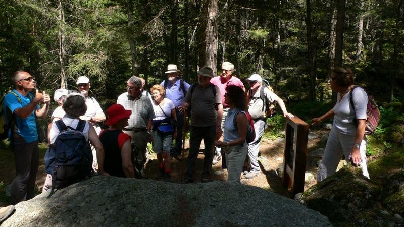 Puis, par un agréable petit sentier, nous nous rendrons sur le chemin aménagé par l’ONF rive gauche de l’Arveyron. Avec Christine nous découvrirons les différentes phases de travail des blocs de granit disséminés sur l’ancienne carrière des graniteurs des siècles derniers. Nous évoquerons ces italiens durs à la tâche, qui pendant près de 80 ans, ont participé à l’embellissement de Chamonix.